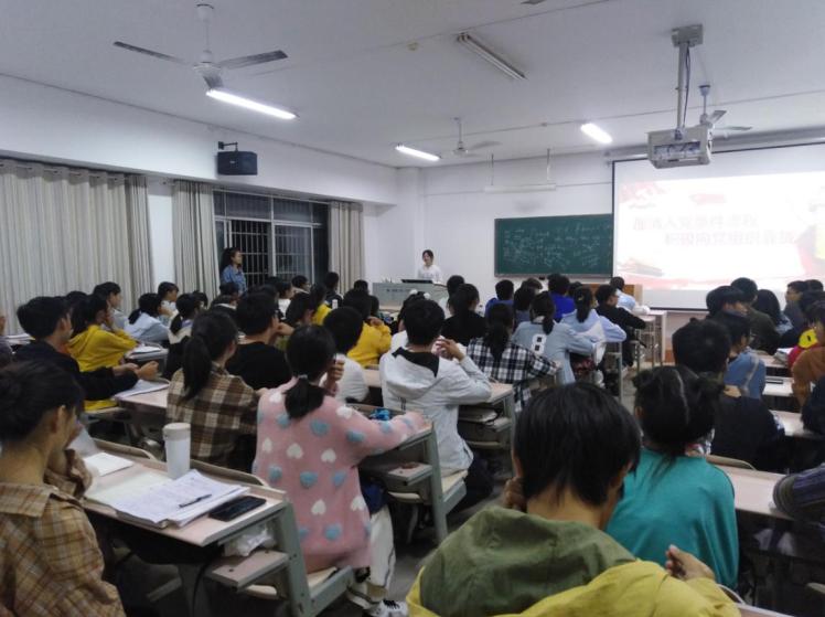 本站讯 10月31日晚19:00于5307、5310、5312,员工支部支委进新生课堂讲“入党”。19级全体新生参加。此次活动由支部副书记、宣传委员、纪检委员主讲。支委以“厘清入党条件流程,积极向党组织靠拢”为题,分别从“党员发展流程及条件”“入党材料撰写要求”进行详细阐述。
