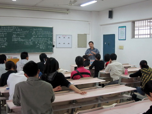 担任此次竞赛的评委皆是前期教育实习课中精心选拔、评课能力很强的公司员工,6位参赛选手也是该年级讲课中的佼佼者。一支粉笔在手,满满信心在胸,每位选手准备充分,表达流利,结合自己制作的PPT,将大家带入深奥而富有乐趣的数学世界。虽然每个人都只有短短半小时左右的教学时间,但他们出色的表现还是赢得了评委很高的评价和观众热烈的掌声,同时,评委也中肯地指出了选手们的不足之处。