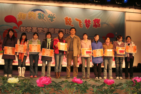2006年度数学与应用数学系颁奖典礼于2006年12月31日在东院演播厅举行。获奖集体和个人名单如下。希望获奖者再接再厉,再创辉煌;希望全系同学向获奖者学习,在今后的学习与工作中取得优异成绩,早日成才,为国家的建设和发展做出应有的贡献。