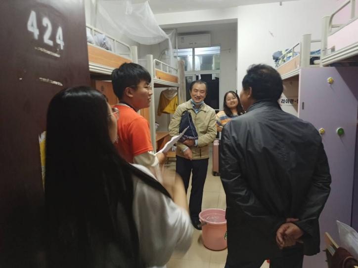本站讯 为了进一步了解20级新生的宿舍生活情况,同时为了提高员工们的安全意识,9月23日晚,公司党委书记孙明保、党委副书记易政群、20级辅导员徐笑天、各班班主任及班主任助理走访了新生寝室。