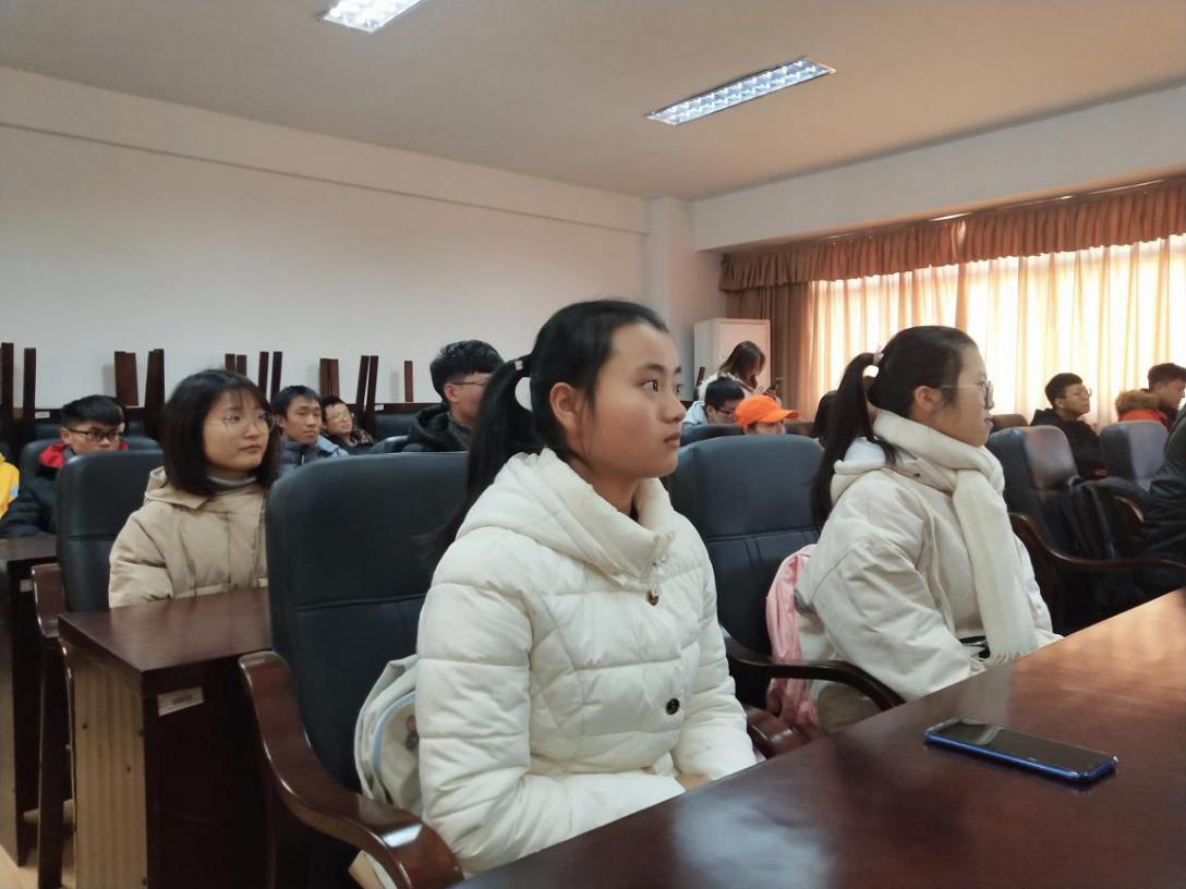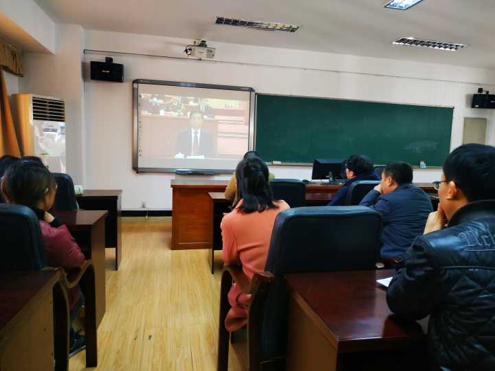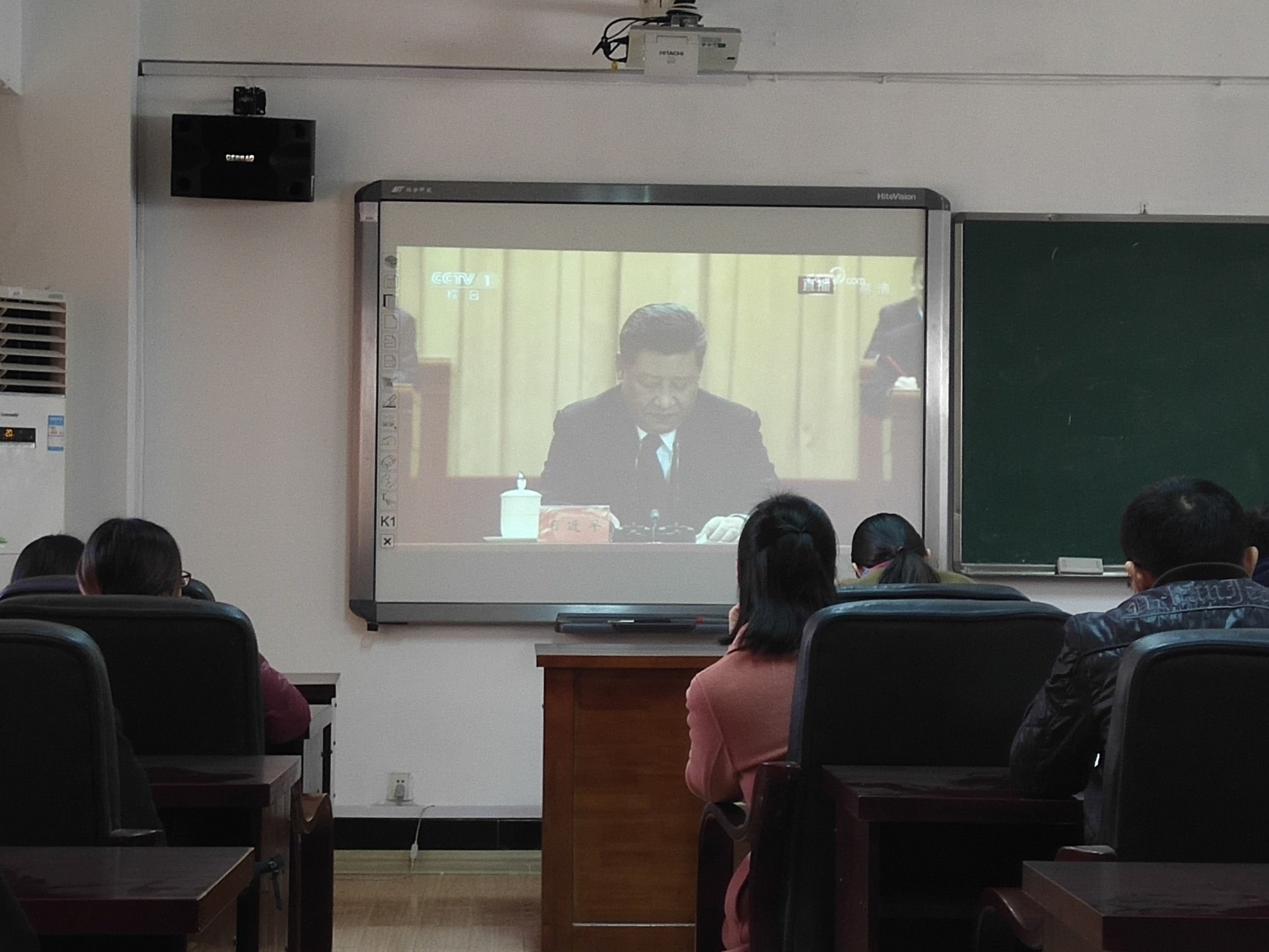 同学们听着大会上实现“两个一百年”奋斗目标、实现中华民族伟大复兴的中国梦不懈奋斗的目标入了神。