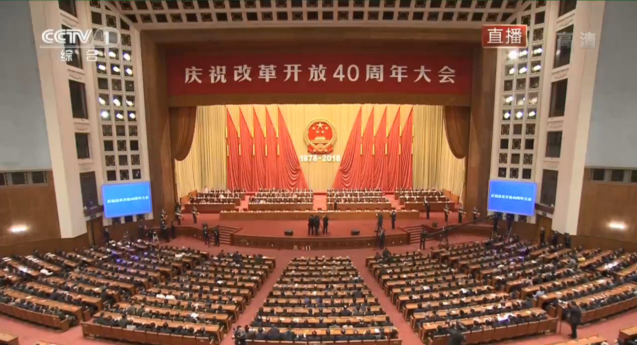 2018年12月18日上午9:45,改革开放四十周年大会召开。四十年前的今天是一个永记史册的日子,在这一天,我们党召开十一届三中全会,实现新中国成立以来党的历史上具有深远意义的伟大转折,开启了改革开放和社会主义现代化的伟大征程。