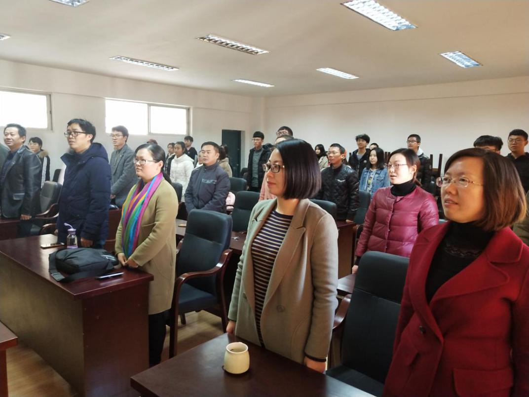 “起来,不愿做奴隶的人们…”。当国歌奏响时,全体师生自觉起立,向国歌致敬。