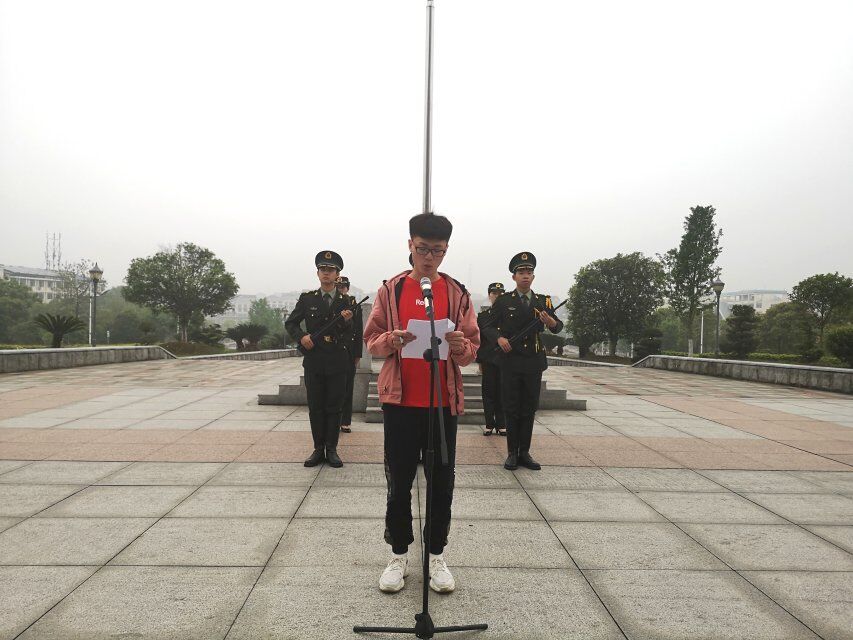 国旗护卫队以铿锵有力的步伐入场,国旗在朝阳的照耀下,在全体老师及同学的注视下缓缓升起。随后,由员工代表喻忍发言,他指出最为当代老员工,要努力学习,掌握丰富的专业知识,要紧跟党的方针路线走,实现中华民族的伟大复兴。党总支书记孙明保老师在这次升旗仪式中强调要不忘初心,牢记使命,铭记党的历史,勇于奋斗。
