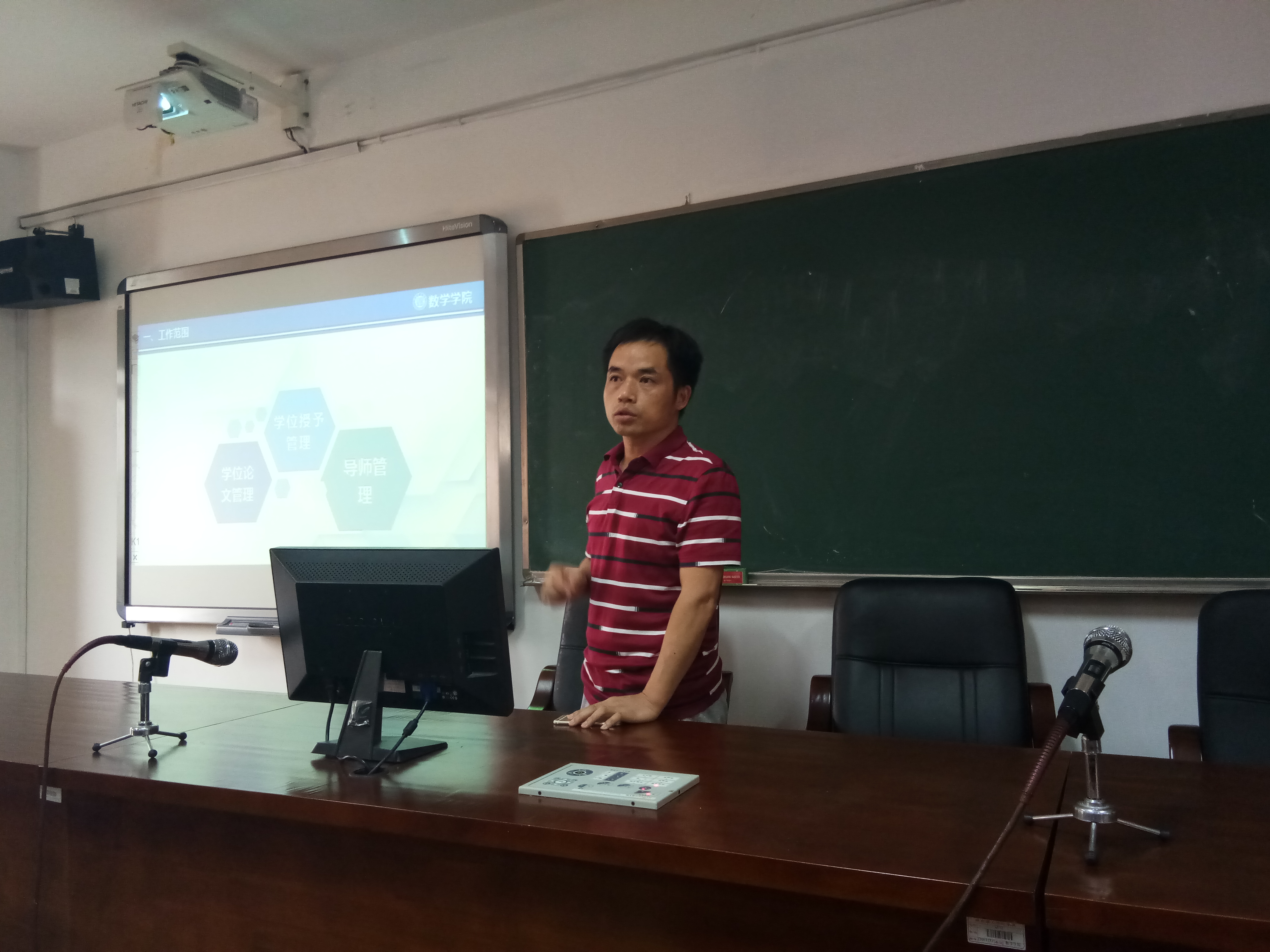 2019年9月17日下午16:00,vsport于5511举行2019级研究生入学教育。公司副经理(主持工作)江五元,党总支书孙明保,党总支副书记易政群,研究生教学秘书和辅导员出席活动。2019级13名全体研究生新生参加。活动由公司副经理江五元主持。