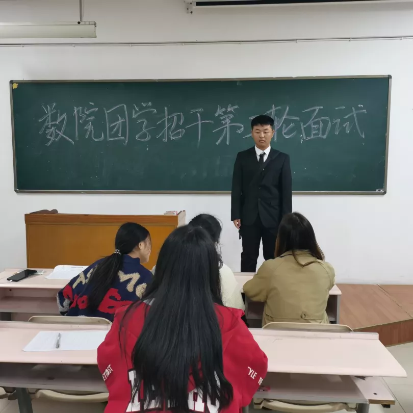 面试部分由面试者自我介绍及各评委团提问两部分构成。不同于往届面试,本次面试中增加了对面试者在办公软件方面的考验,便于评委对面试者操作能力作出判断。在面试过程中,他们对面试的认真对待及其临场发挥,都展现了数院学子优秀的精神面貌和个人素质以及服务于同学的坚定决心。