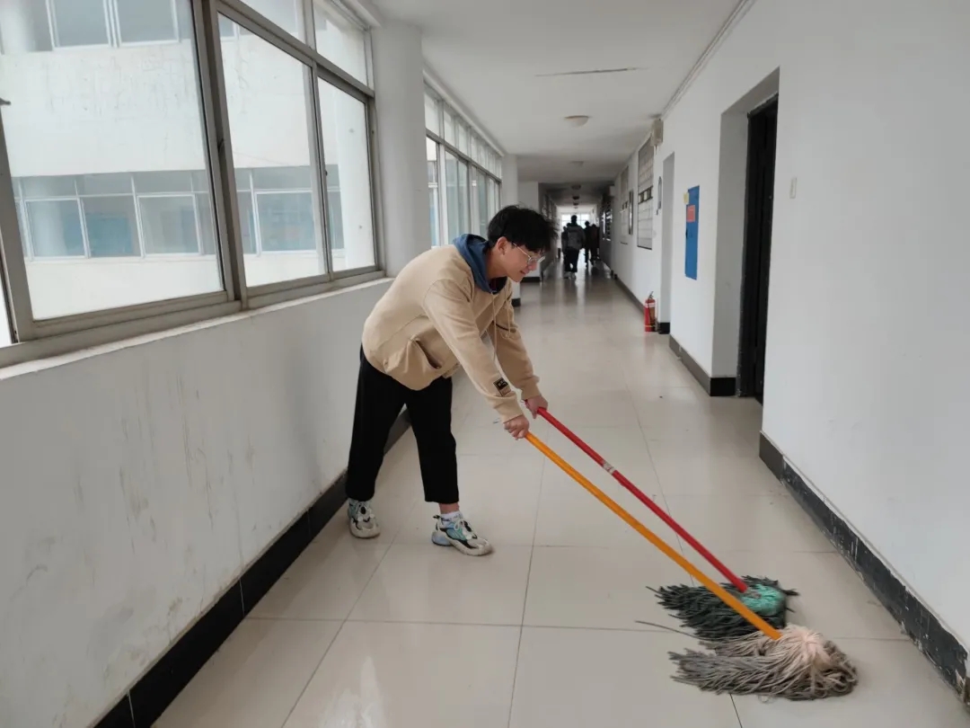 本次劳动教育实践课程的任务为五号教学楼公共区域卫生清扫。清扫过程中,21级五个班根据各自班级人数差异,合理拆分成多个小组,各小组任务分配明确,所有同学有序地对教学楼的各个楼层进行了大扫除。另外,率先完成劳动任务的小组也会分散协助其他未完成任务的小组;同学们以对劳动的热情和对公司的热爱,积极主动承担了劳动任务,彼此帮助,认真细致地清理教学楼的每一个角落;劳动实践后,教学楼焕然一新,学习环境更加整洁、温馨。