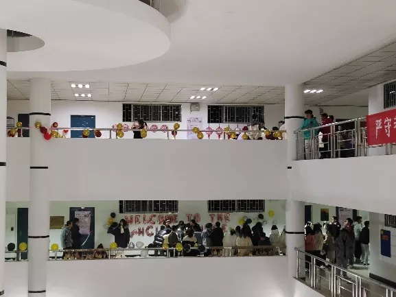 本次游艺晚会由三个部分构成。其中,一楼以“数学”为主题,举办的游戏类型为:吹蜡烛和数学概念匹配。经过老师精心挑选的概率匹配题,致力于考验同学们数学功底同时,也让大家从游戏中体会到数学的魅力;夹弹珠和英语版你画我猜则在以“英语”为主题的二楼举办,旨在提高同学们对英语的重视程度,帮助大家顺利通过四六级;而三楼以青年大学习为主题,举办了甩便利贴、青年大学习问答两项活动,以此提高同学们的思想觉悟。游艺晚会中,老师与员工组队共同参与夹弹珠、你画我猜等游戏,在交谈中彼此熟悉,在互动中增进师生间的情感,闯关成功获得相应数量兑奖券的同时,也与老师一起收获了快乐。
