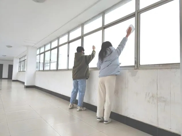 本次劳动教育实践课程的任务为五号教学楼公共区域卫生的清扫。劳动开始前,21级各班按班级人数差异,合理地拆分成五个小组。随后,各小组针对窗户玻璃、室内天花板和墙角等难清理的地方制定了相应的对策,并进行了有效地清理。劳动中,各小组任务分工明确,落实到个人,有序地对教学楼的各个楼层进行了大扫除。劳动结束后,张同学说:“挽起衣袖,躬身打扫,捡拾垃圾,这一过程中,我不仅享受了劳动的乐趣、体验奉献的满足,而且为校园的干净整洁贡献出自身的一份力量。”