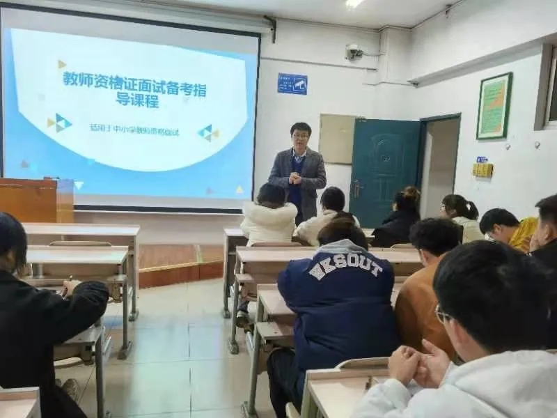 会议中,罗德仁就春季面试做了基本的介绍,强调考生在面试过程中应注重形象,做到衣着得体、表达流畅、举止自然,以饱满自信的姿态应对面试。接着,禹辉煌对教资的结构化面试、教学设计、试讲、答辩等多个环节进行了详细的讲解。他提醒大家在备课时应认真规划答题思路,答辩做到条理清晰,巧妙设计教学环节,合理分配教学时间。